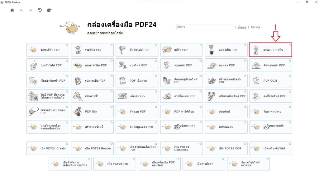 ขั้นตอนที่ 1 : เข้า PDF24 Toolbox หลังจากนั้นให้คลิกที่ “แปลง PDF เป็นไฟล์อื่นๆ”