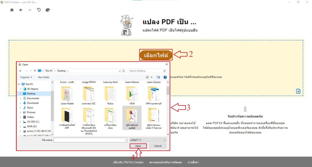 หมายเลขที่ 3 : เลือกไฟล์ที่ต้องการจะแปลง PDF