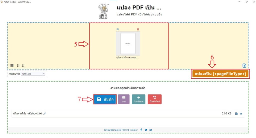 หมายเลขที่ 6 : คลิก “แปลงเป็น “[+pageFileType+1]”
