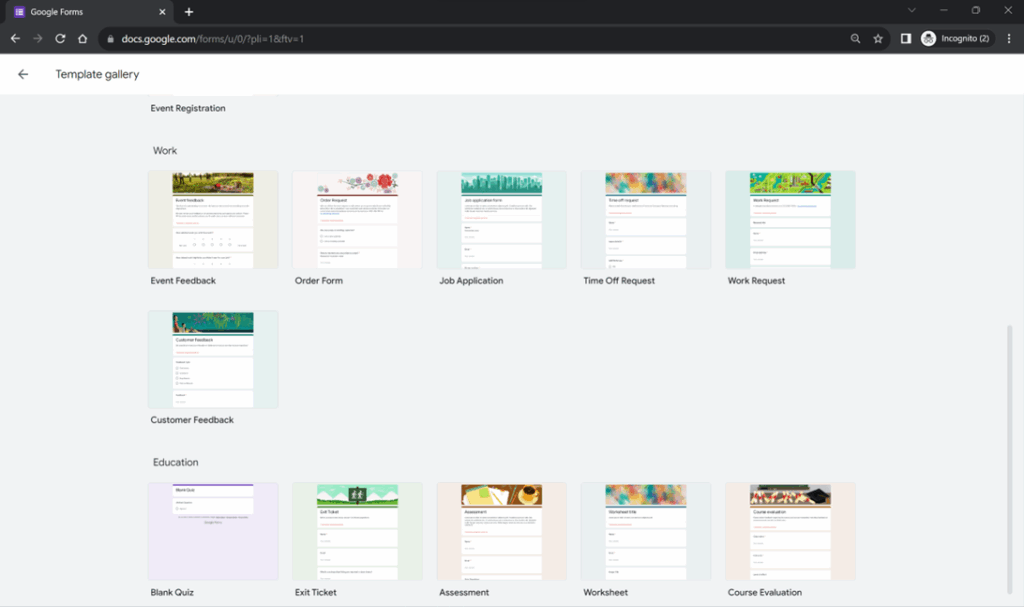 Google Forms มีเทมเพลตให้เลือกมากมาย