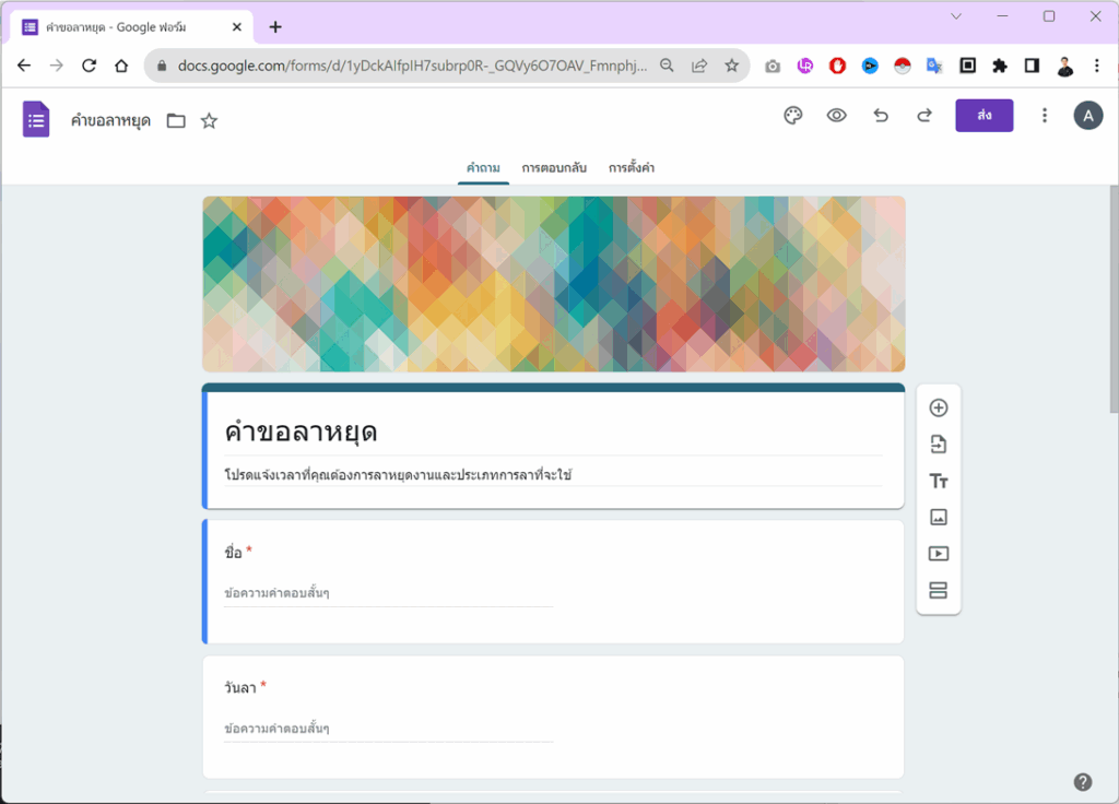 - เพิ่มคำถาม, ตัวเลือก, หรือส่วนข้อมูลต่างๆ ตามต้องการ