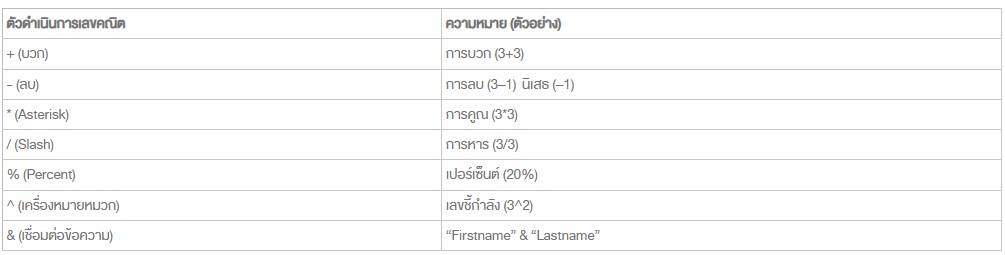 ตัวอย่างสูตรคำนวณ