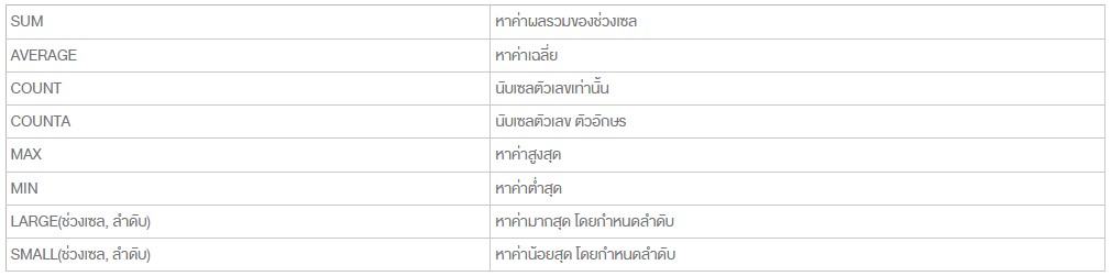 สูตรคำนวณมีวิธีใช้งานเหมือน Excel ดูเพิ่มเติมได้ที่ :