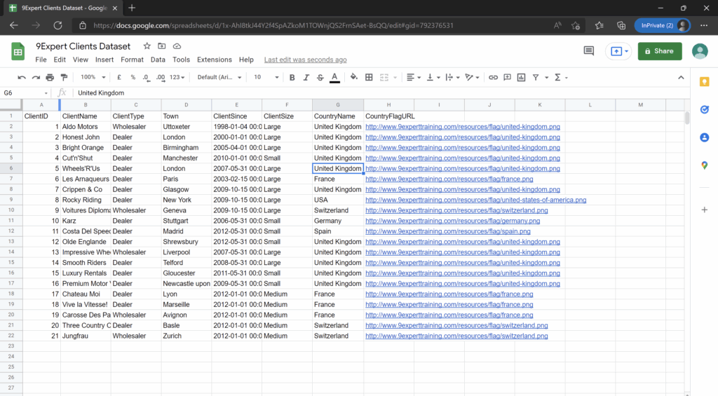 เมื่อนำเข้ามาเรียบร้อยแล้วจะได้ข้อมูลที่นำเข้ามาอยู่ใน Google Sheets แล้ว