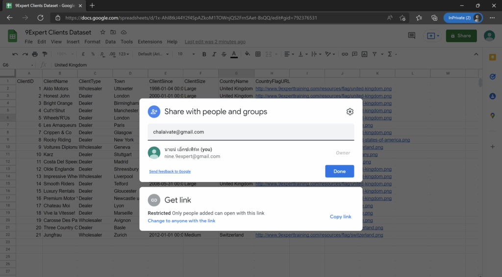 การแชร์เอกสาร Sheets