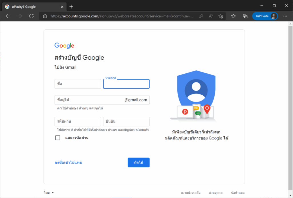 2. คลิก สร้างบัญชี แต่หากใครมี Account หรือสมัครก่อนหน้าแล้วก็ Sign In ด้วย Email ได้เลย